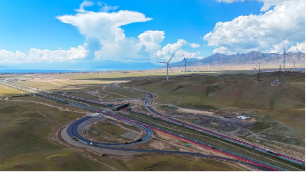 赛里木湖景区东门互通立交建设项目施工现场。