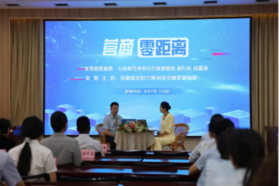 8月7日,人民银行博州分行党委委员、副行长赵晶涛及本地金融机构代表、企业家代表,做客博尔塔拉融媒体中心综合广播《营商零距离》专题栏目直播间, 就金融如何助力博州经济高质量发展,进行详细介绍。