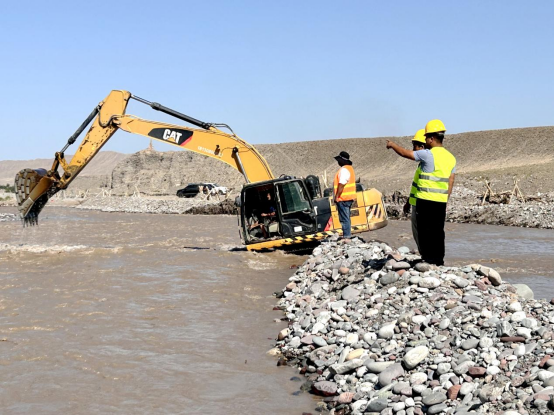 防汛施工队负责人刘永超说:“目前在木华里渠首开展防汛应急抢险,按照水位变化开展河流危险区域维修加固、分洪,现场共有6辆工程车,15名施工人员,按照24小时值班制度,随时待命,确保英吉沙农业灌溉工作和下游群众生命财产安全。”
