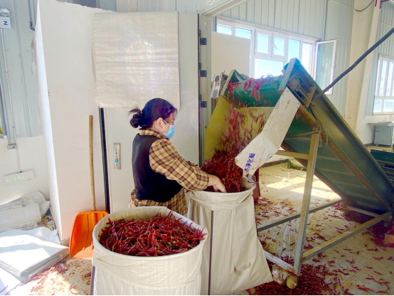 辣椒产业的壮大不仅有力推动了公司的发展壮大,也为周边群众提供了更多就业的岗位,让艾比布拉·乌麦尔等50多名员工实现了照顾家庭和务工增收“两不误”。