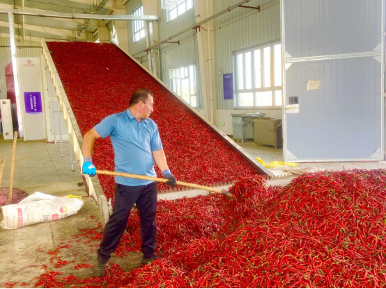 “和周边农户合作,市场价格高的时候,就按市场价格收,市场价格低的时候,公司给农户保底收购。为方便农户交售辣椒,公司还专门派车前往田间地头收购。企业发展的同时,也为英吉沙乡村振兴工作作出企业贡献。”何琪说。