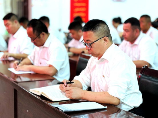 8月9日,在依格孜也尔乡政府会议室,机关全体干部坚持先学一步、学深一层,在全面学习、把握、落实全会精神上下功夫、做表率。把全会提出的新思想、新观点、新论断深入研究、解读、阐释,切实把学习成果转化为武装头脑、指导实践、推动工作的强大动力,为基层各项工作提供有力的智力支持。