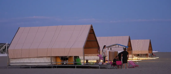傍晚时分,和硕县金沙滩旅游度假区的露营地逐渐热闹起来,众多露营爱好者在沙滩上支起帐篷,享受浪漫的沙滩露营。