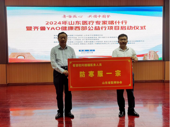 “鲁喀医心”2024年山东医疗卫生专家喀什行暨齐鲁YAO健康西部公益行项目在英吉沙县启动。外力摄