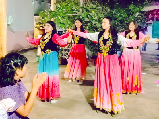 走进龙甫乡托喀依村,远远就听见老党员阿布都克热木·木萨家里传来欢快的弹唱声。映入眼帘的是返乡学生身着艳丽的服装翩翩起舞,小歌手正在激情地演唱着《为祖国喝彩》,庭院中充满了欢声笑语、喜庆祥和的活动氛围,处处展现着村民积极向上的精神风貌。