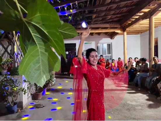 除精彩的歌舞弹唱外,村民们还一起学习国家通用语言文字,相互纠错、相互交流、相互学习,相互讨论林果种植管理经验、养殖经验,为乡村精神文明建设注入丰富的文化内涵。