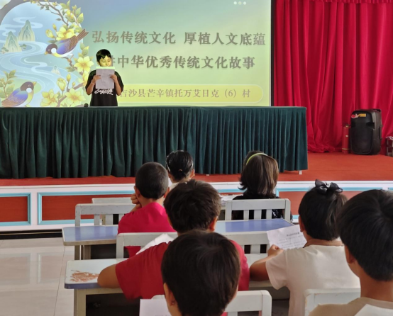 芒辛镇托万艾日克村在新时代文明实践站开展“弘扬传统文化 厚植人文底藴 讲中华优秀传统文化故事”讲故事比赛。芒辛镇托万艾日克村供