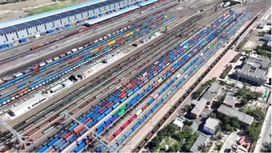 阿拉山口站编组站。(龙证宇 摄)