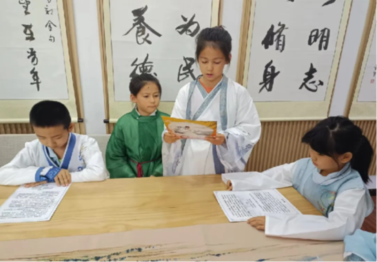 青得里街道光明社区辖区小朋友王可心说:“在扮演的过程中,我深刻领略到他们诗中表达的思家之情,如此生动又真实。今天的活动非常有意义,对我们之后的生活学习或是创作作品都有很大帮助。”