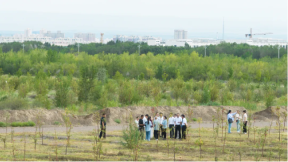 捐赠仪式结束后,考察团一行还赴博乐市融媒体中心(广播电视台)考察交流,赴博乐市万亩海棠生态园,考察“我家新疆有棵树”生态林公益项目建设情况。