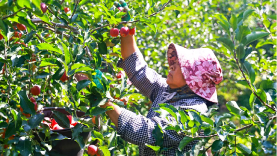 今年黄莺种植了160亩香妃海棠,在科学管理下获得了大丰收。今年她家的一级果率在85%以上,所有果品以每公斤5.5元的价格被订购一空。