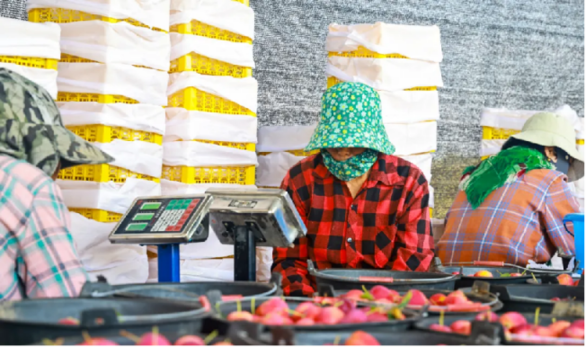 水果经销商徐霏霏说:“多年来,我们一直在朋友这里收购香妃海棠,味道好、质量佳,今天收购28吨香妃海棠后,将果子运往北京、上海、广州等地进行销售。”