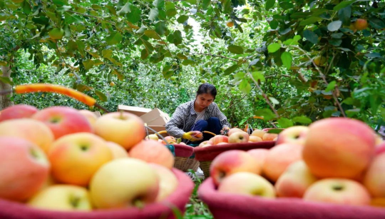 眼下,正是早熟苹果陆续成熟的季节,在阿瓦提县苹果园里,连片的苹果树郁郁葱葱、枝繁叶茂,散发着诱人的果香,果农们正忙着采摘,抢“鲜”上市。