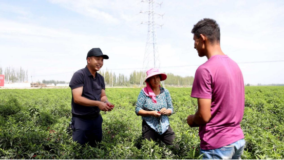在拍克其乡的辣椒地里,公司技术员阿布里米提·艾合买提正耐心地为种植户讲解种植和采摘技巧。他管护的1200亩辣椒地今年丰收在望。随着村民种植规模的扩大和产业链的延伸,鲜椒、干椒等多层次产品供应体系逐渐形成,为村民增收开辟了新渠道。