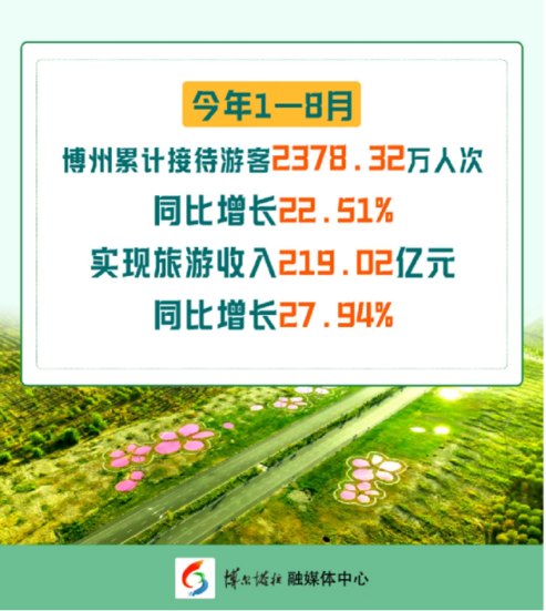 据统计,今年1—8月,博州累计接待游客2378.32万人次、同比增长22.51%,实现旅游收入219.02亿元、同比增长27.94%。