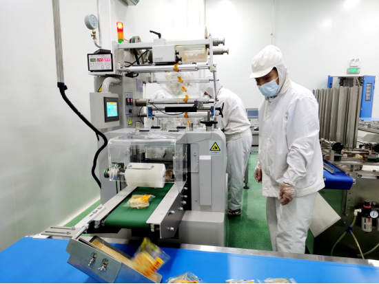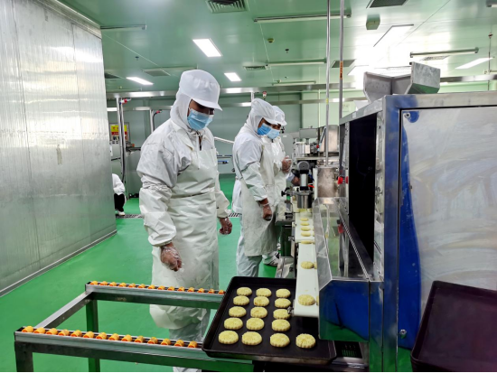 9月8日,走进县南达食品科技有限公司生产车间,一股浓郁的香气扑鼻而来。工人们穿着干净的工作服、戴着口罩和食品帽在自动化生产线旁忙碌着,经过和面、配料、包馅、烘烤、冷却包装,一块块精美的月饼逐渐成型。从经典的五仁,到创新的枣蓉核桃、玫瑰坚果等多种馅料,满足不同消费者的口味需求。