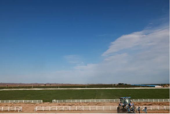 在博乐市乌图布拉格镇,2024年新疆“中国农民丰收节”主会场绿化、美化、清洁等工作正在有序进行。张新燕 摄