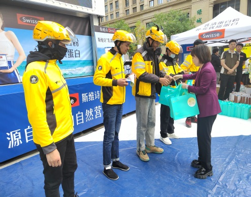 国药集团新疆新特药业有限公司负责人王旭东说:“借助这次活动我们也与这些飞驰在城市中的外卖骑手有了短暂的交流与互动,接下来我们也会继续积极投身于公益活动,共同营造更加和谐、友爱的社会环境。”