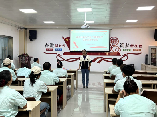 为增强企业职工的网络安全意识,9月12日下午,英吉沙县总工会精心组织“网络安全”进企业宣传活动在英吉沙齐鲁纺织服装有限公司展开。