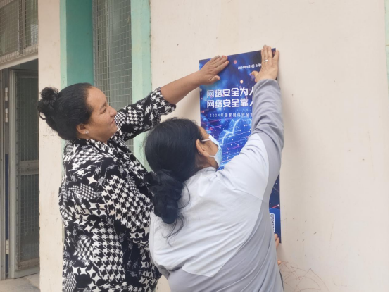 此外,村“两委”还通过在村中的主要道路、活动中心等显眼位置张贴色彩鲜艳、内容丰富的网络安全宣传海报,吸引了众多村民驻足观看,向村民传递网络安全的理念和知识,起到了良好的宣传效果。