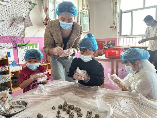 活动中,教师根据幼儿年龄特点,利用视频、绘本故事,通过生动有趣的课件为幼儿详细讲解中秋节的来历,感受着节日的欢乐气息。小班幼儿满怀欣喜地坐在葡萄长廊下,品尝、分享美食,在谈笑声中感受着传统文化的魅力。中班幼儿用稚嫩的小手制作着灯笼,一个个形态各异、色彩鲜艳的灯笼跃然纸上,为节日增添浓厚的色彩。饼儿香,饼儿甜又是一年月儿圆,看!大班幼儿在搓、揉、压中体验做月饼的快乐,一个个月饼“新鲜出炉”啦,孩子们欢聚一堂,品鉴中秋美食,畅叙情谊,共迎佳节。
