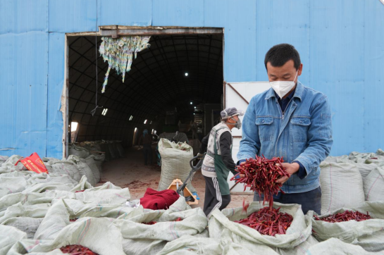 10月15日,一家秸秆颗粒生产企业的负责人专程从四川赶来土墩子农场考察,计划在这里投资建厂。秸秆颗粒是一种利用废弃秸秆生产的高热能燃料,是烘干辣椒的燃料首选。该项目落地后,不仅能就近为惠农万家农业专业合作社的辣椒烘干生产线提供低成本燃料,而且能解决辣椒秸秆处理难题,还能消化土墩子农场其他农作物的秸秆。与此同时,辣椒段、辣椒丝、辣椒粉等多种辣椒产品加工项目的建设也已经被惠农万家农业专业合作社提上日程。