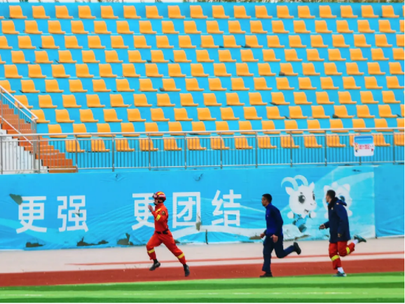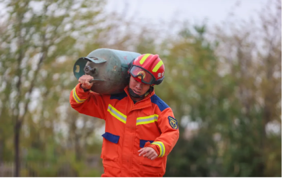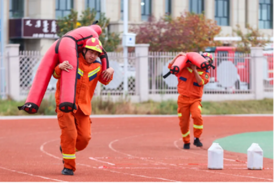 10月15日,该比武竞赛的400米物资疏散项目在博乐市市民体育场举行,参赛人员需先完成50米空跑,然后扛60公斤假人完成50米跑,放下假人换两桶16斤泡沫桶跑100米,放下泡沫桶换15公斤煤气罐跑100米,最后冲刺100米。比武竞赛过程中,参赛人员们身手矫健,动作迅速,充分展示消防队伍的专业素养和应急反应能力。