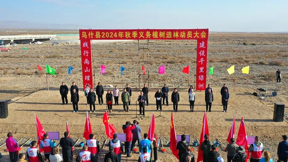 10月30日,乌什县2024年秋季义务植树造林动员大会在亚曼苏柯尔克孜族乡阿依丁村举行。县四大班子领导与各族干部群众、志愿者一同参加植树劳动,以实际行动践行“绿水青山就是金山银山”的发展理念,弘扬“柯柯牙”精神,为乌什大地再披新绿。