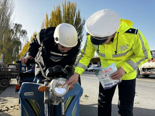 活动中,宣传民辅警结合秋季车辆及行人出行特点,通过发放交通安全宣传单、普及道路交通安全知识等方式,向群众讲解骑乘电动车摩托车不佩戴安全头盔及违法载人、无证驾驶、酒驾醉驾等交通违法行为的危害,并结合辖区典型交通事故案例,强调佩戴安全头盔与使用安全带的必要性和重要性,引导骑乘人员提升自我防护意识,规范交通出行习惯,做到安全、文明出行。