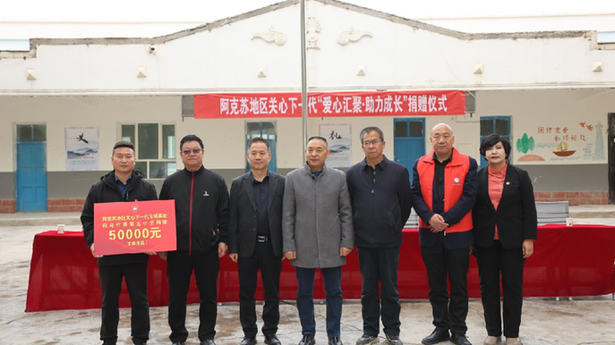 11月6日,阿克苏地区关心下一代“爱心汇聚·助力成长”捐赠活动在乌什县第五小学举办。地区关工委副主任陈泰明一行为学校捐赠价值五万元的文体用品。