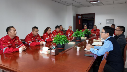 11月7日,六师五家渠市应急管理局党委成员正在与芳草湖农场飞鹰爱心救援队队员代表座谈。于三 摄