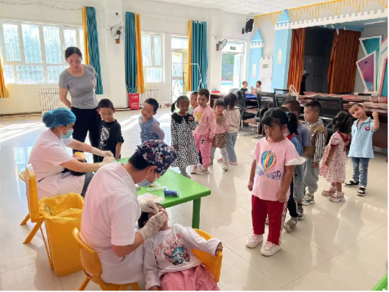 9月6日,精河县妇幼保健医院的医护人员走进大河沿子镇第一幼儿园和第二幼儿园,为孩子们进行了细致地护齿涂氟工作。医护人员不仅专业地检查了孩子们的牙齿和口腔卫生状况,还耐心地为他们涂氟,并记录了牙齿健康情况。同时,叮嘱孩子们涂氟后的注意事项,以保护牙齿。