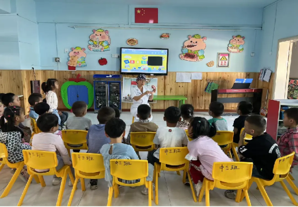 精河县妇幼保健医院医护人员为孩子们上了一堂关于口腔健康知识的快乐科普宣教课。马海玲 摄