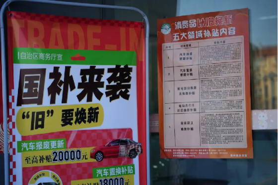 11月15日,记者走进博乐市恒大汽车城,看到不少4S店门口都有“国补来袭,‘旧’要换新”“汽车置换至高补贴18000元,汽车报废至高补贴20000元”等标语。