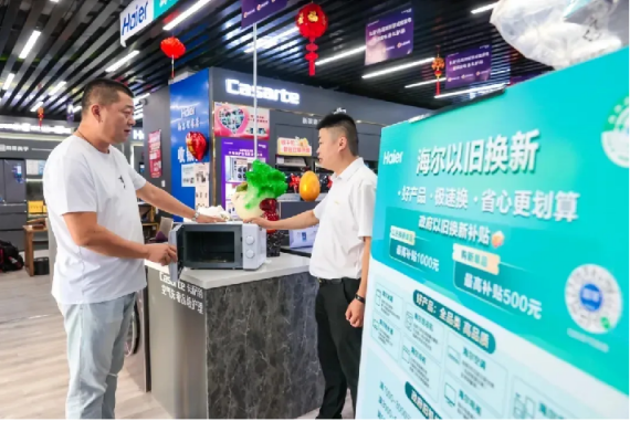 另一边,该公司电器主管黑巴都拉·买拉提正为消费者推介产品。他说:“自公司参加以旧换新活动以来,消费者明显比以往多了。可以旧换新的是一级能效和二级能效的节能型产品,消费者享受折上折,最高补贴达2000元。目前,补贴范围从八大类产品提升至十几种产品,新增了洗碗机、净水器、智能马桶,还有智能门锁等等。”