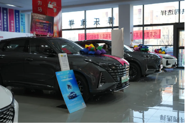 在长安汽车博乐致祥天和4S店,消费者在现场选购、咨询心仪车型。“置换补贴力度大,活动很给力!”在新能源汽车展位上,该店销售总监龚金抓详细介绍汽车配置和汽车报废补贴政策内容,为消费者算起买车“经济账”,他说:“长安全系车型均可享受国家以旧换新补贴。我们的燃油车型(置换)补贴13000元,新能源(置换)补贴是 18000元。我们店9月份的销量是37台,10月份的销量达到62台,有了一个显著的提升,其中一半是新能源车。”