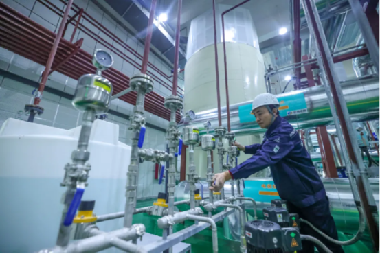 他所指的梯级加热是指室外气温在2摄氏度以上时,供热站通过换热器把温泉水的热量转换给供热循环水,取热后的地下水回灌至原含水层;室外气温为零下8摄氏度以上时,使用温泉水和热泵机组供暖;室外气温低于零下8摄氏度,启用电锅炉+蓄热系统,在谷电时段为蓄热灌蓄热,并根据室外环境温度和居民室内温度需求释放热量。