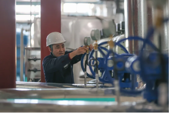 11月20日,李强在供暖公司结束了一天的工作后,工作服依然保持着早晨初穿时的整洁,未见尘埃。李强是温泉县恒温能源有限公司的设备运维负责人,他所在的这家企业供暖不用煤炭,而是利用“温泉”和电力作为热源。