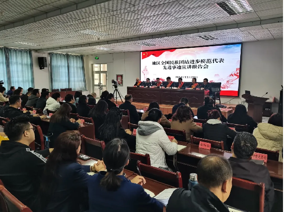 11月20日,全国民族团结进步模范代表先进事迹宣讲报告会在泽普司法局会议室举行,来自全县各县直单位党员领导干部、教育系统师生代表、医疗卫生系统代表及企事业单位职工代表在现场聆听。各乡镇、村(社区)干部、群众以视频的方式在各分会场聆听此次宣讲报告会。