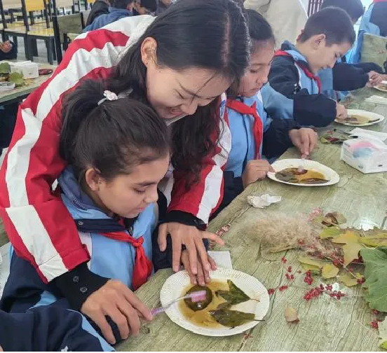 随后,在工作人员的带领下,学生们前往周边林带识别各类植物,收集植物叶片样本,动手制作标本。学生们团结协作,个个热情饱满,体验了压制法和浸制(煮)法植物标本的乐趣。学生们兴奋地展示着自己的植物标本,脸上洋溢着满足与自豪的笑容。