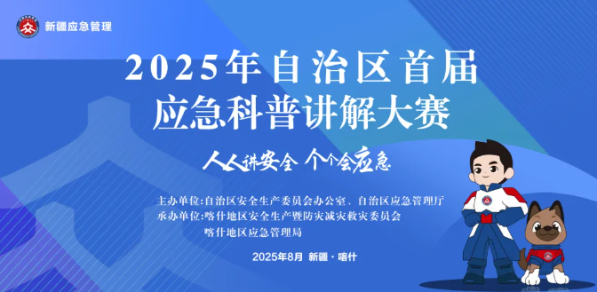 直播预告:由自治区安全生产委员会办公室、自治区应急管理厅主办,喀什地区安全生产暨防灾减灾救灾委员会、喀什地区应急管理局承办的“2025年自治区首届应急科普讲解大赛”将于2025年8月21日上午10:00开赛,届时“新疆应急管理”微信视频号将进行同步直播,敬请关注。