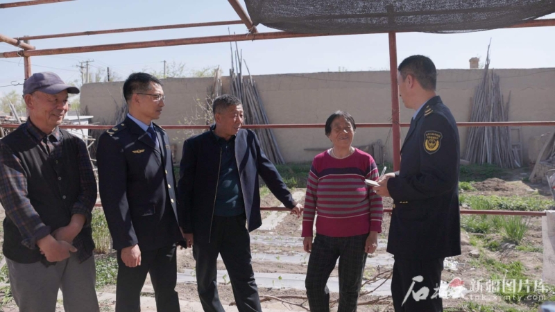 阜康市应急管理局防灾减灾部门工作人员走村入户为群众宣传防灾减灾救灾知识。