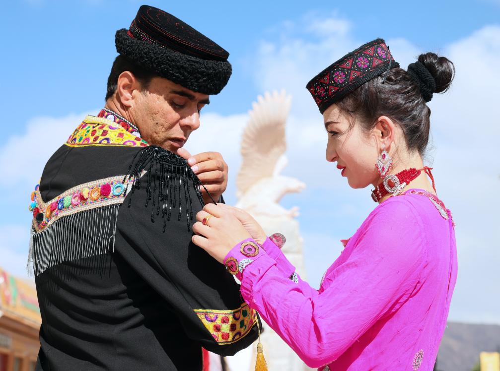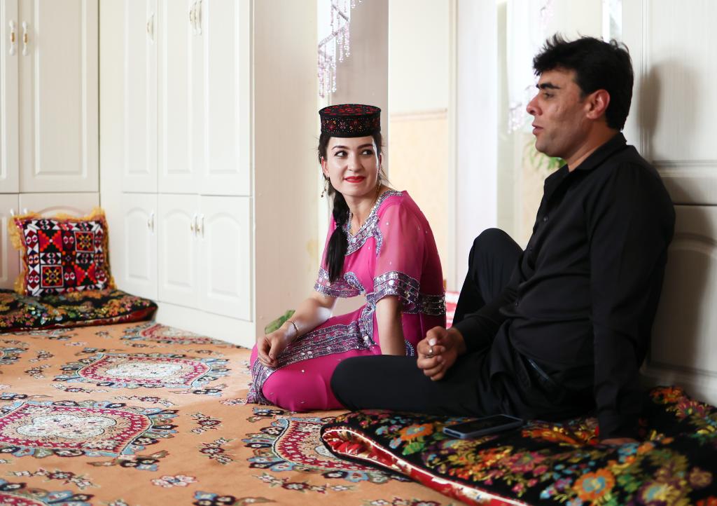 新疆塔什库尔干塔吉克自治县(以下简称“塔县”)地处帕米尔高原东麓,平均海拔4000米以上。拜合提亚尔·居马汗和妻子古丽巴努尔·库尔恰克就职于塔县文工团。拜合提亚尔毕业于新疆艺术学院,主修歌唱专业;古丽巴努尔毕业于新疆喀什艺术学校,擅长舞蹈。这对年轻伉俪因歌舞结缘相识,成为人生伴侣,并用所学专业传承优秀传统文化、展示帕米尔高原风情。