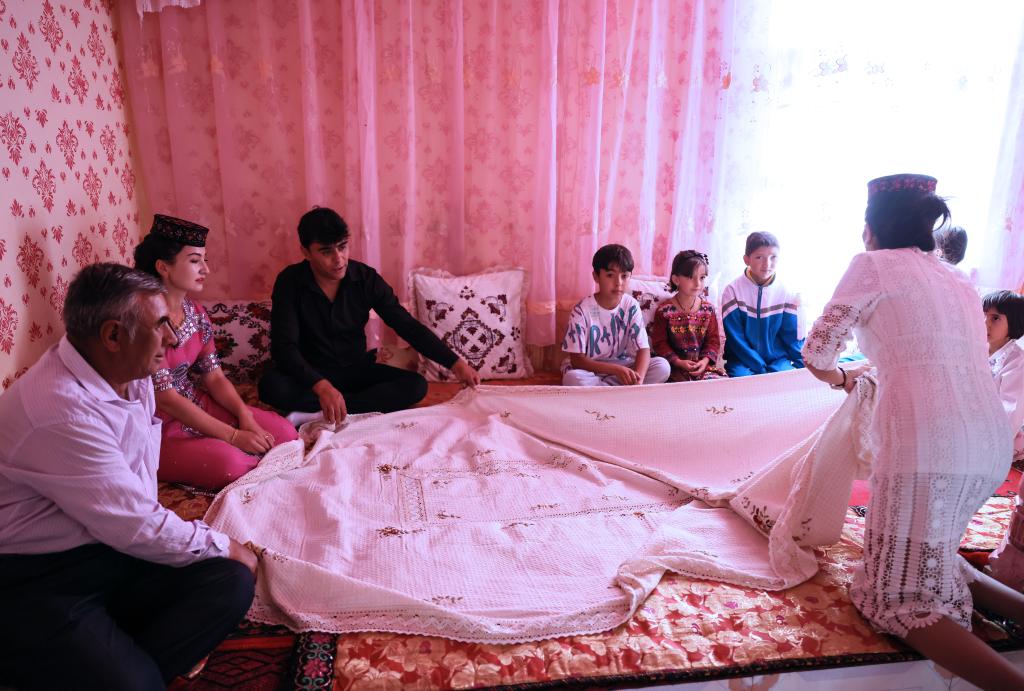 吃完晚饭,古丽巴努尔·库尔恰克和家人一起收拾餐具(9月4日摄)。