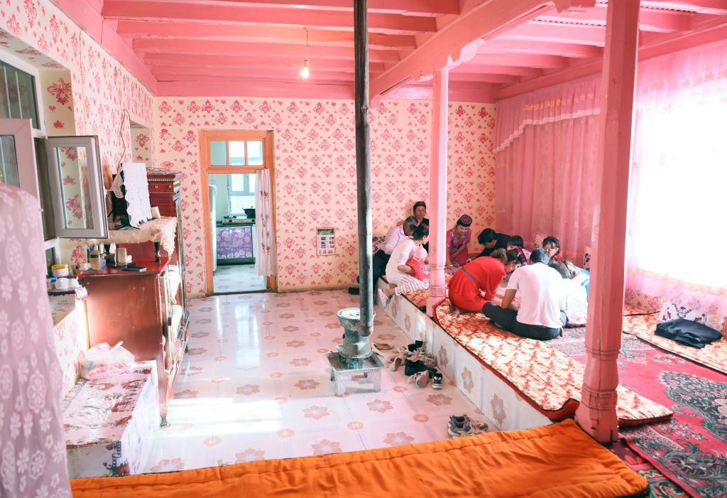 在位于县城的新家中,古丽巴努尔·库尔恰克深情地望向丈夫(9月4日摄)。