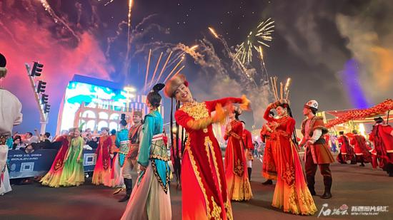 1月30日,在卡塔尔举行的2023亚洲杯激战正酣,当地时间19时30分,亚洲杯嘉年华活动在卢赛尔市欢乐开启,中国新疆演员受邀参加嘉年华活动。石榴云/新疆日报 记者王晶晶摄