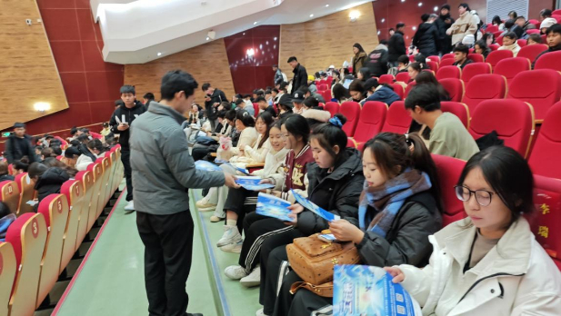 为扩大赛事影响力,阿克苏分行还通过线上渠道加强对学生群体的宣传触达,同时依托微信公众号投放赛事活动推文,营造赛事活动氛围。在宣讲现场布放易拉宝等宣传海报,并为学生们发放宣传单,激活大学生参赛热情。