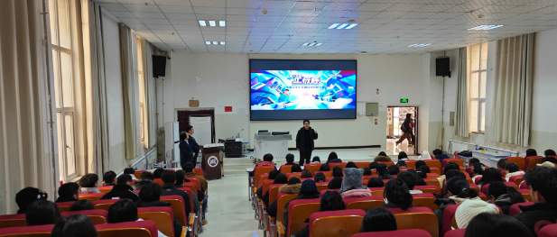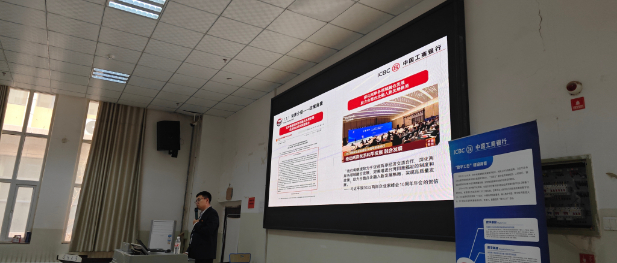 活动现场,工商银行喀什分行行长助理赵伟通过生动的PPT演示和精彩案例分享,向在场学生详细介绍了金融科技的前沿趋势、“工行杯”大赛的赛制规则、奖项设置及参赛作品要求。宣讲人员重点展示了数智金融在便捷支付、智能理财、风险管理等领域的创新应用,激发了同学们的浓厚兴趣。