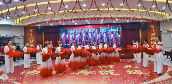 本部第四工会小组的集体舞蹈《雪龙吟》,以其磅礴大气的编排和精湛的表演,赢得了观众们的阵阵喝彩。本部第一、第三联合工会小组表演的集体舞蹈《万疆》,更是将晚会的气氛推向了又一个高潮。舞者们身着华丽的服饰,用优美的舞姿演绎着对祖国山河的热爱和赞美之情,大气磅礴的表演让现场观众沉浸其中,不少人眼中闪烁着感动的泪花。