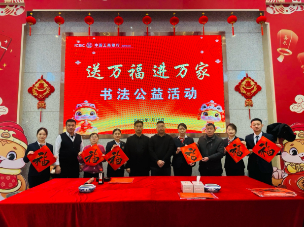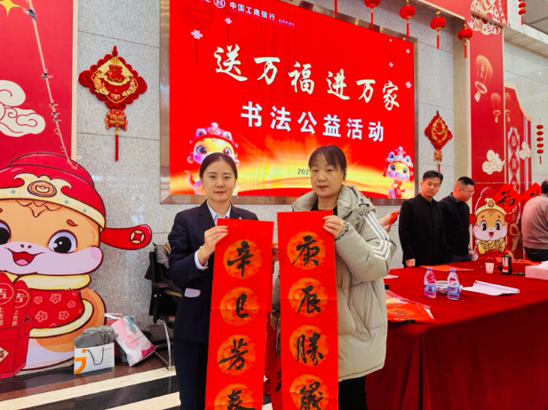 根据新疆分行工会《关于在2025年元旦春节期间开展“送万福进万家”书法公益活动的通知》(工银工会〔2025〕2号),在新春佳节即将到来之际,为营造浓厚的节日氛围,弘扬和传承中国传统文化,2025年1月15日上午,由石河子工商银行工会牵头举办“送万福进万家”书法公益活动,石河子分行党委委员、副行长王强出席本次活动。